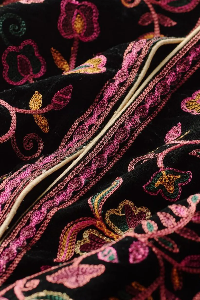 Evoking all of the best holiday spices, its stitches of warm reds, oranges and yellows enrich already-luxe black velvet …