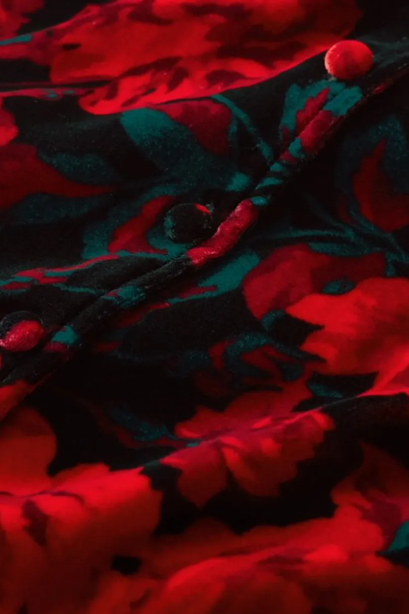 Lavish the hours in our lush and silky velvet blouson, with curved openings at full front placket and button-detailed 3/…