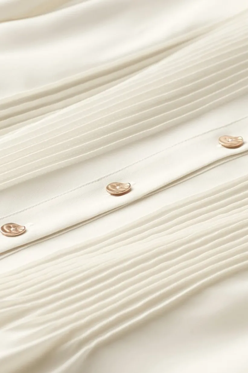 Lightweight with a decadent drape, Makara now comes in lustrous crepe – made even more elegant with the gleam of metallic buttons and pintucks at the front and back. Dressed down with jeans and boots or dressed up with ponte and flats, it’s the ultimate outfit starter.
