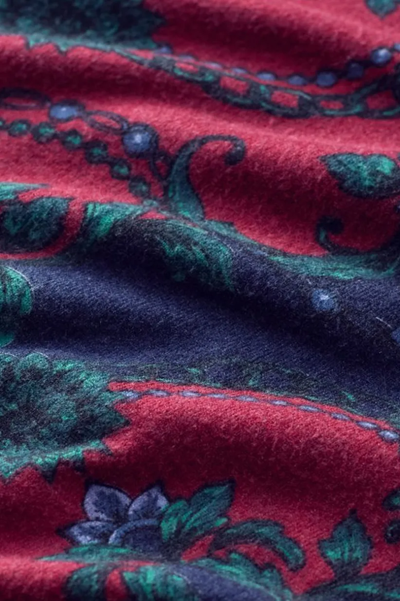 A bouquet of softness for special days or any day. Vibrant botanicals cascade from the boatneck of this long-sleeve tuni…
