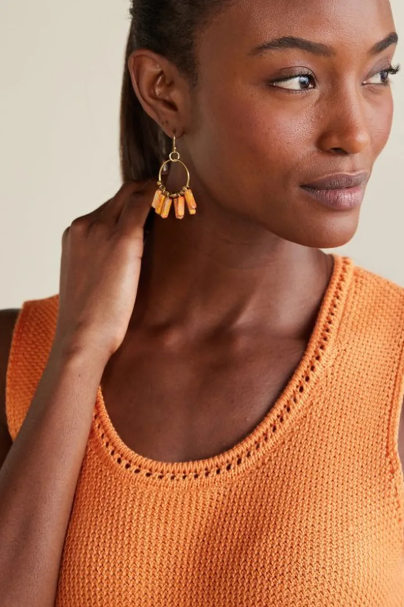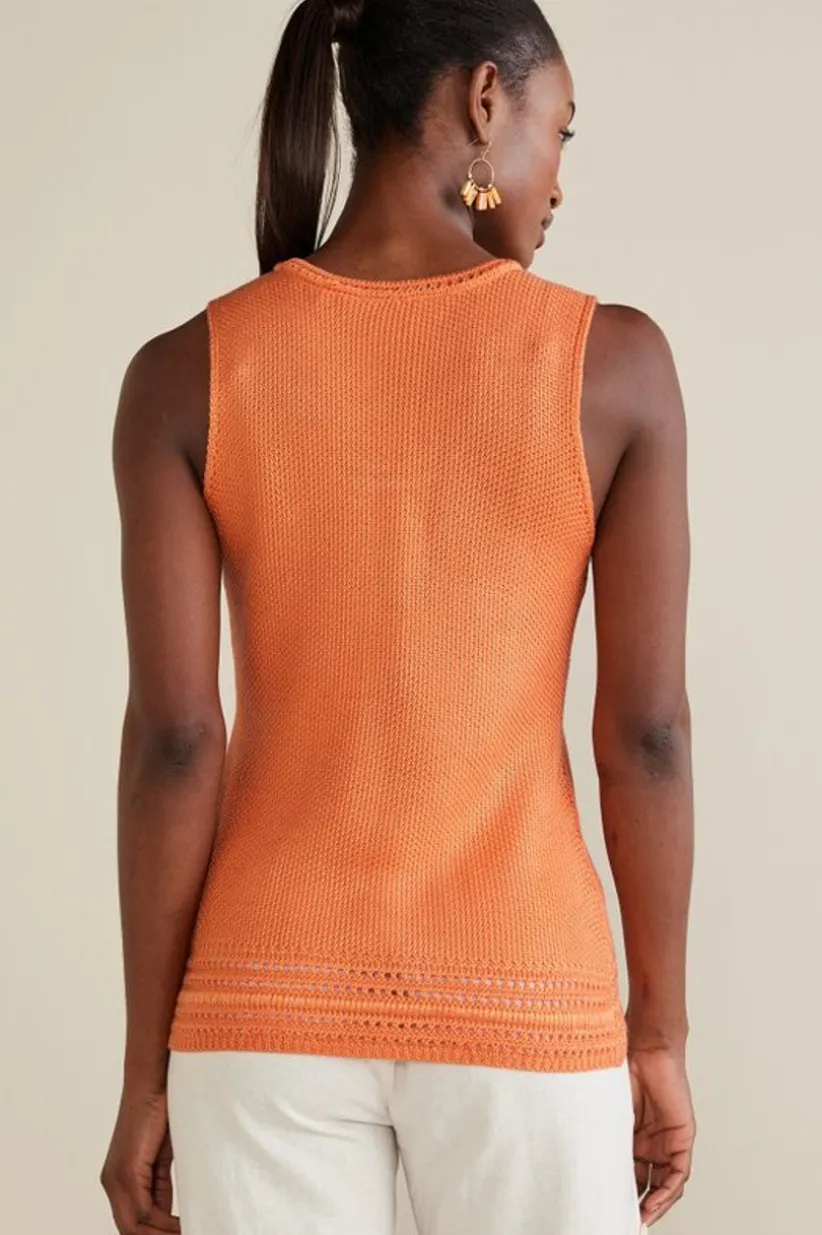 This is a classic sweater tank but with textured pointelle accents at the scoop neck and bottom hem. Wear it alone or layered under a cardi, too.
