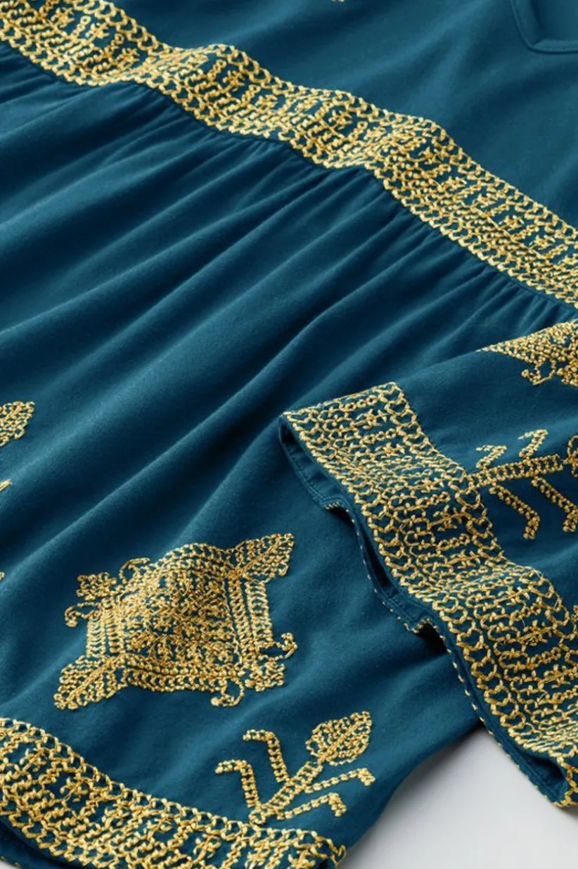 The wildly popular Zaneta Dress silhouette… as a top! All the details you love, in a shorter length. This supple knit top shimmers with metallic gold embroidery. Bell sleeves define the design, and the empire waist fabulously flatters. Sure to be a favorite for countless occasions (or just every day!), where do you see yourself wearing this bound-to-be bestseller?