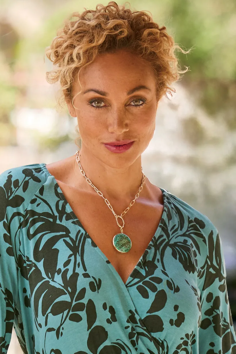 A natural beauty, turquoise is said to have many benefits, among them being promoting peace and tranquility, making this pendant both striking and serene. Claw closure.