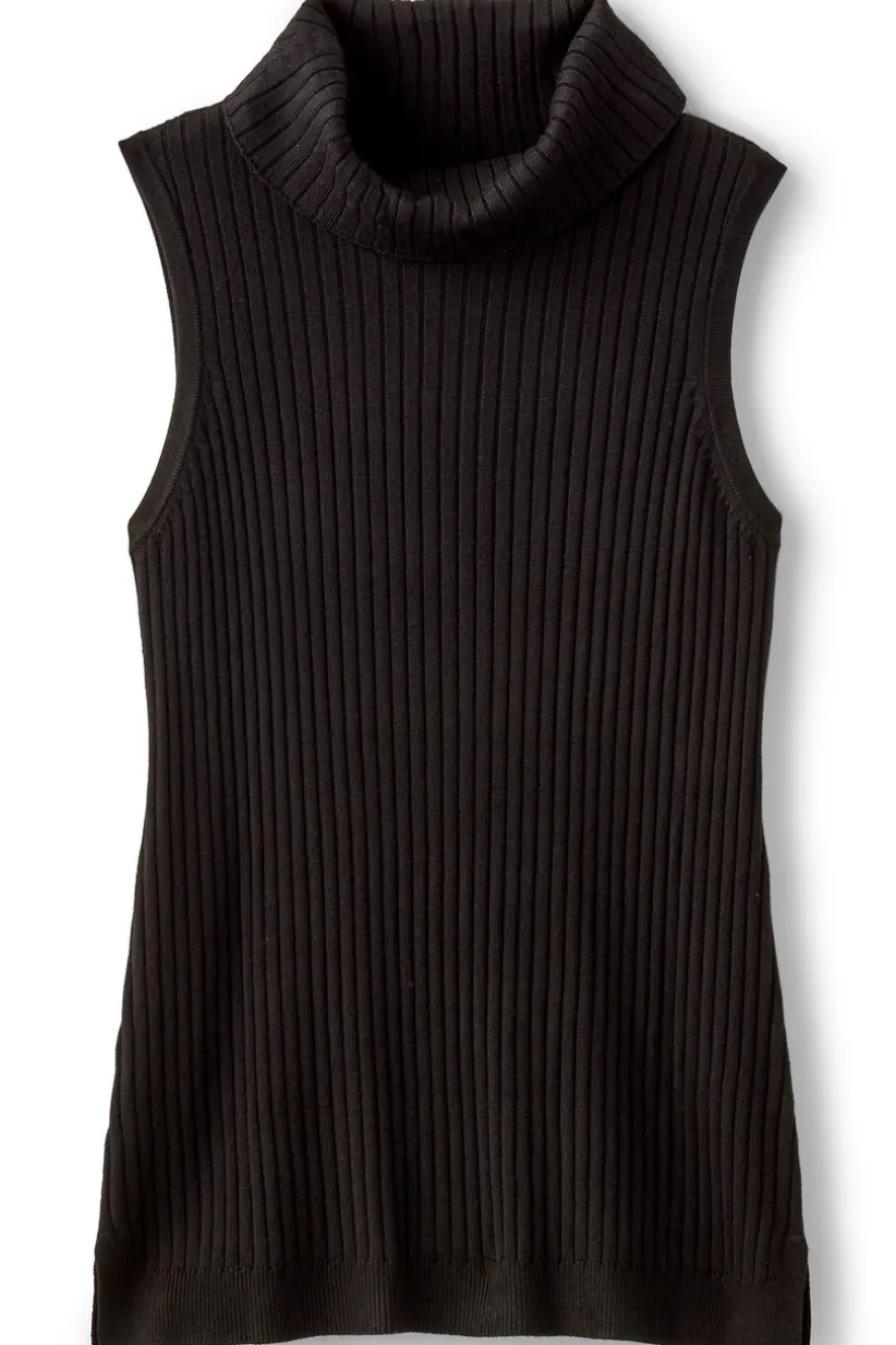 This sleeveless turtleneck wears, pairs and layers with ease thanks to the rib knit that skims the body without the clin…