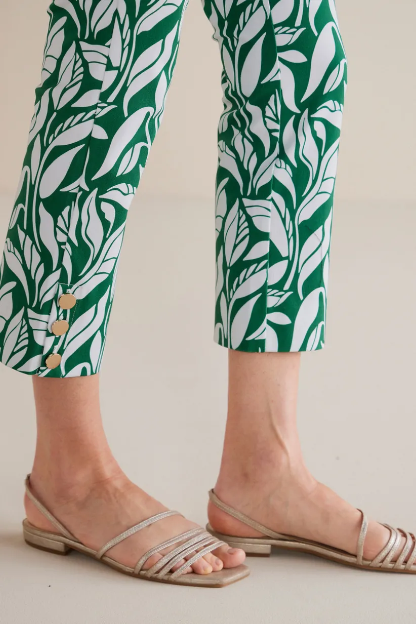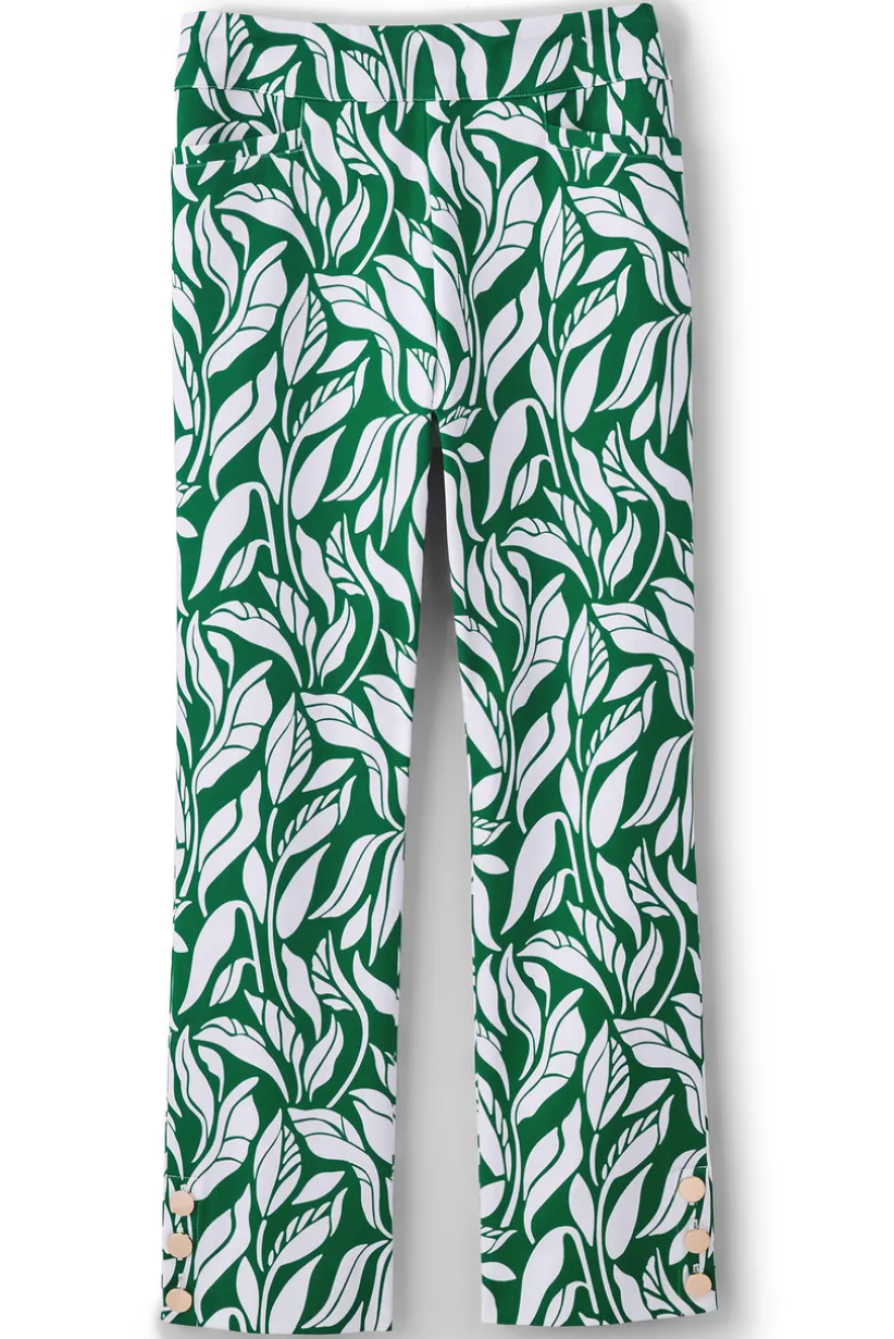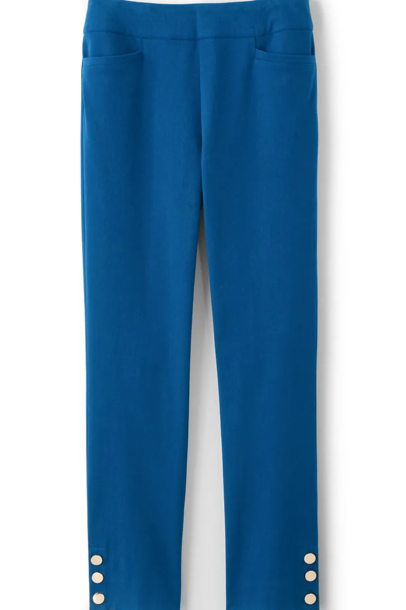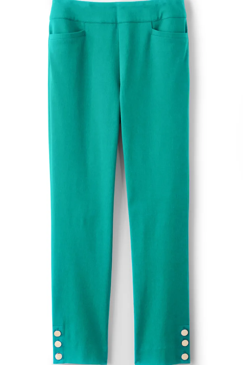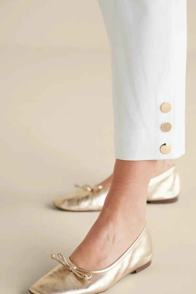 Elegantly finished with gold buttons at the hem, these sleek pull-on crop pants are made from a phenomenal stretch fabri…